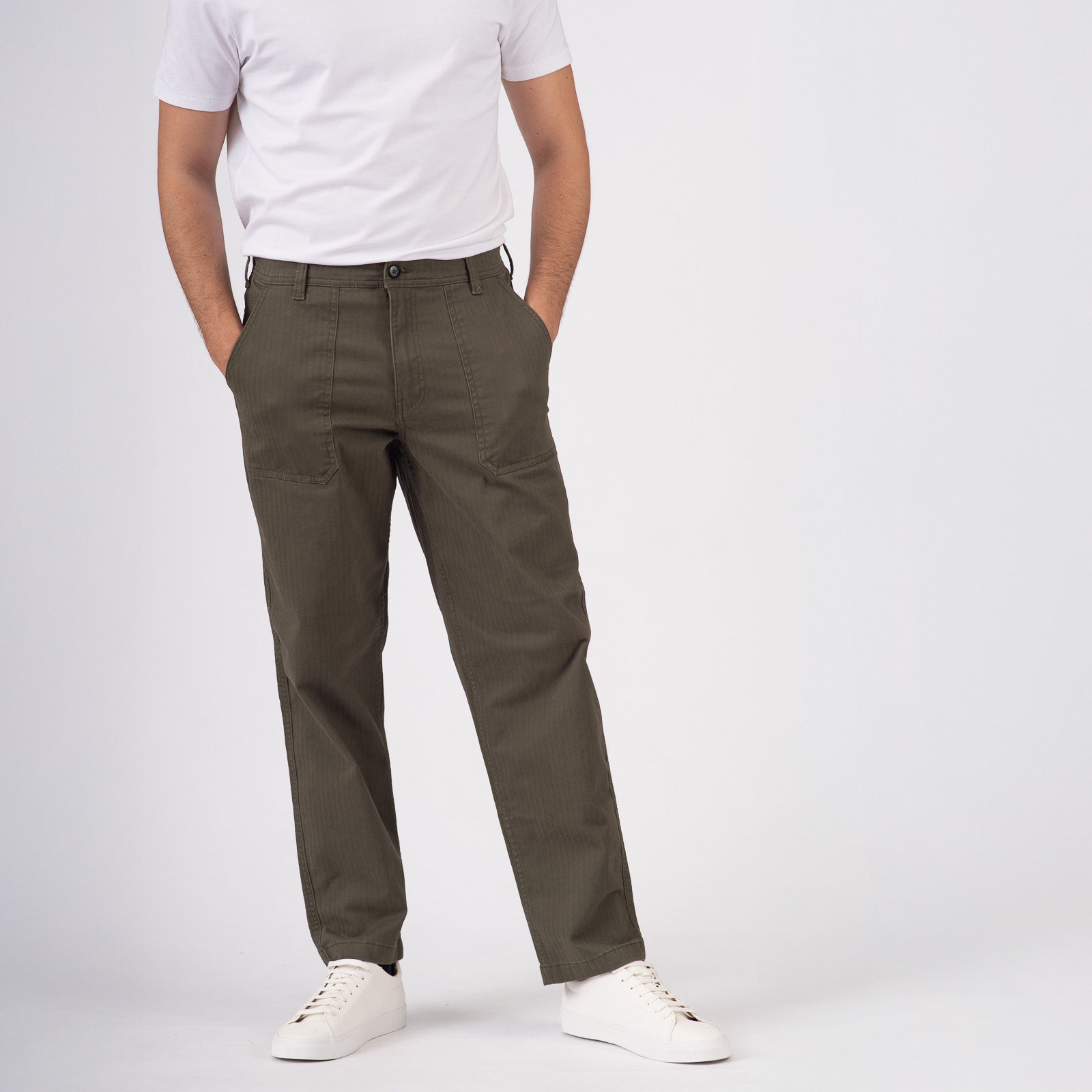 Pantaloni in cotone, modello d’ispirazione utility con tasche frontali applicate e vestibilità comoda, ideali per un look casual dal carattere deciso.