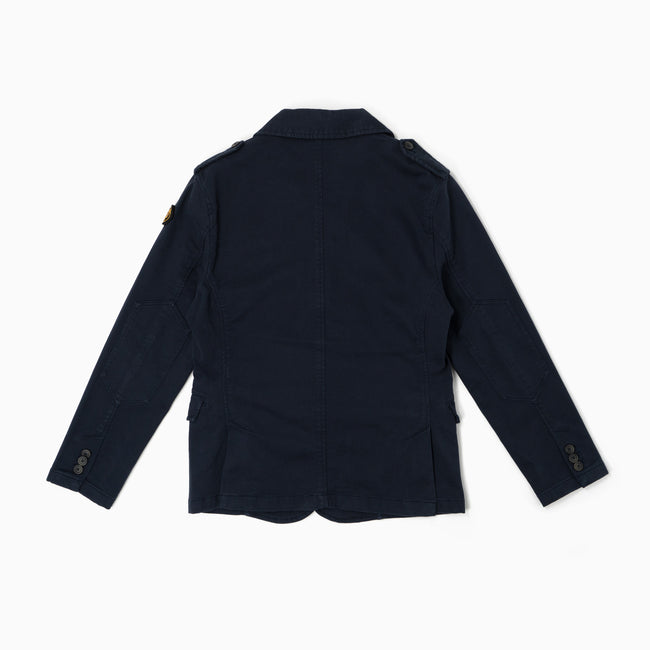 - Structured lapel collar and reinforced shoulder epaulets echo timeless military tailoring