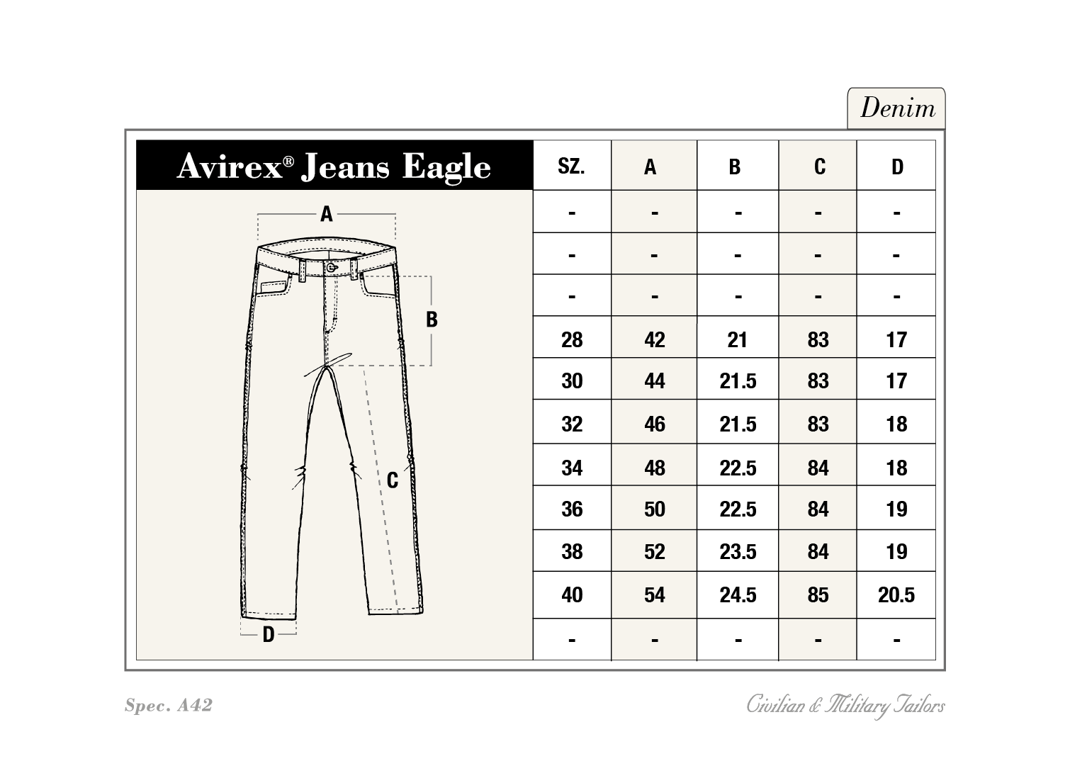 The Avirex® Denim is constructed inside like a semi-classic trousers.