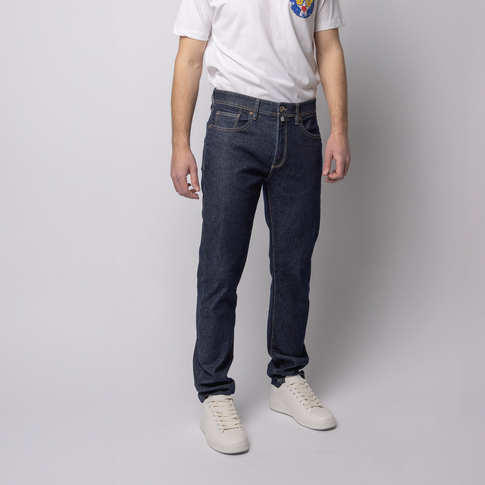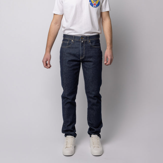 Denim has a history rooted in functionality and workwear. Its heavy cotton fabric, characterised by a diagonal weave, has become a mainstay of the modern wardrobe due to its durability and ability to adapt to the body, acquiring a unique lived-in look. Comfort Denim (99% Cotton, 1% elastic)