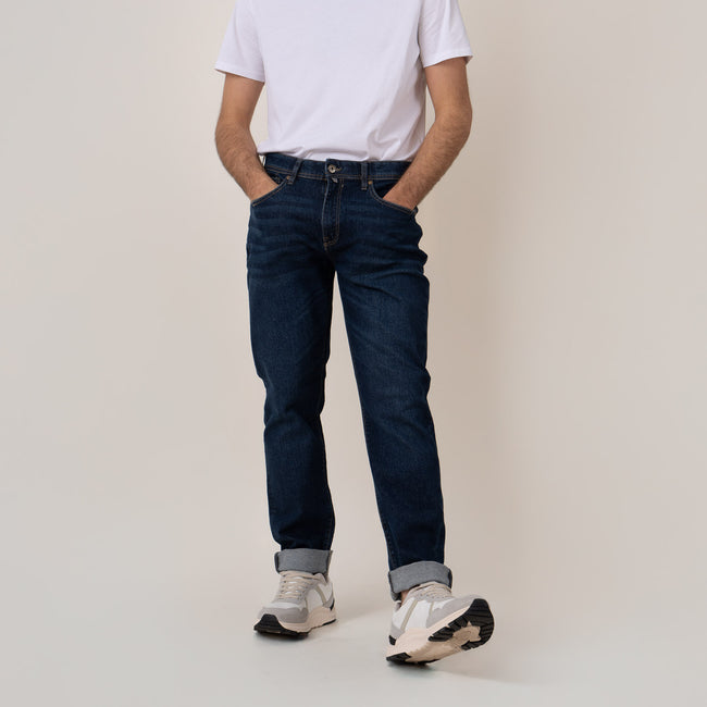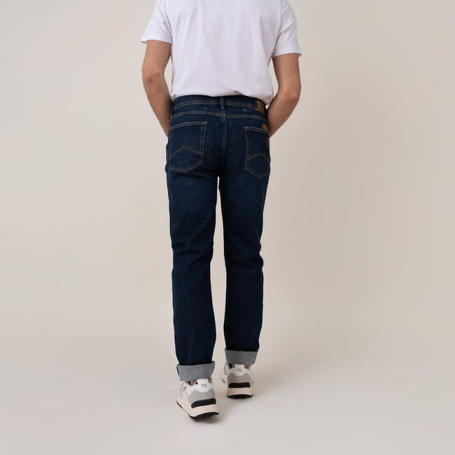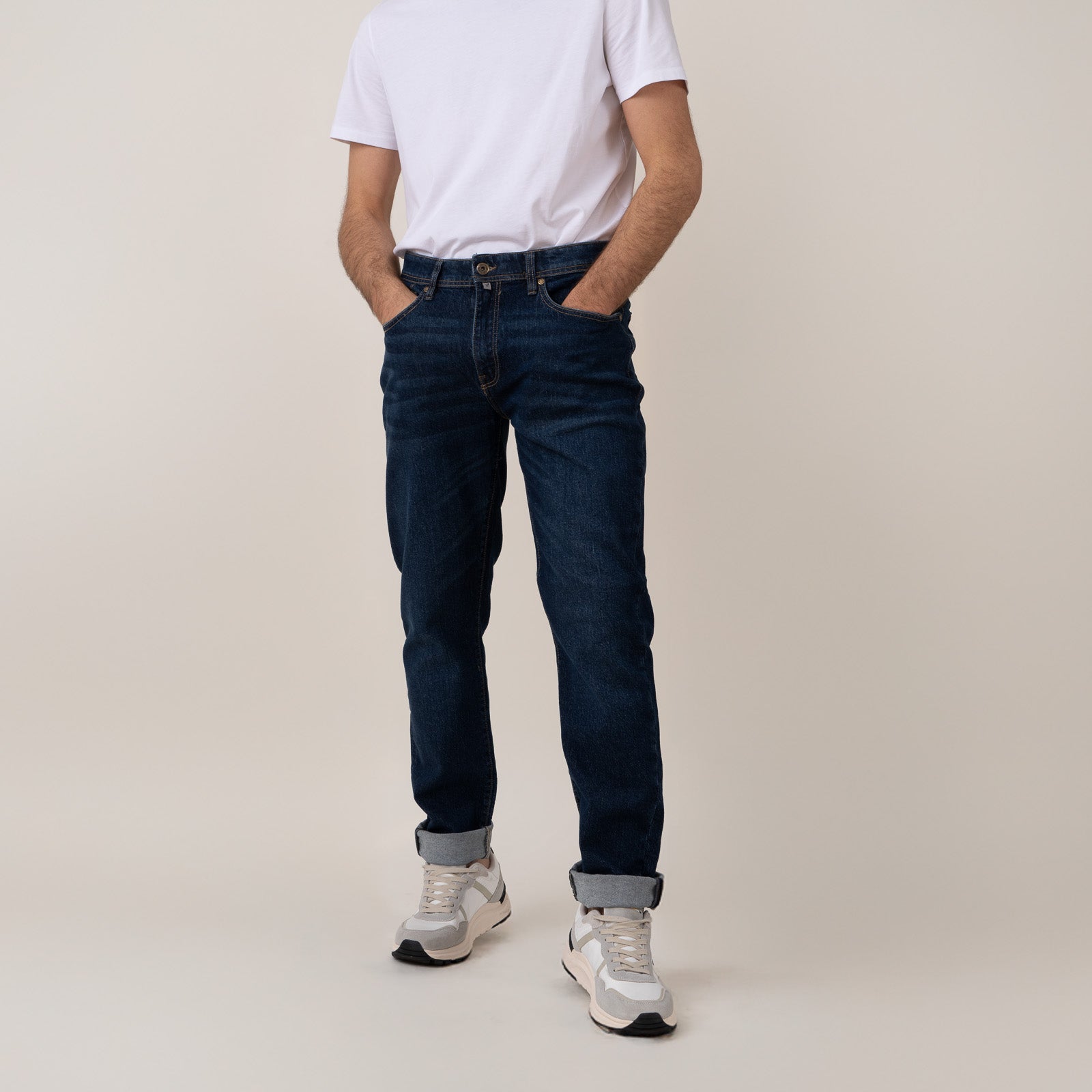 Denim has a history rooted in functionality and workwear. Its heavy cotton fabric, characterised by a diagonal weave, has become a mainstay of the modern wardrobe due to its durability and ability to adapt to the body, acquiring a unique lived-in look. Comfort Denim (99% Cotton, 1% elastic)