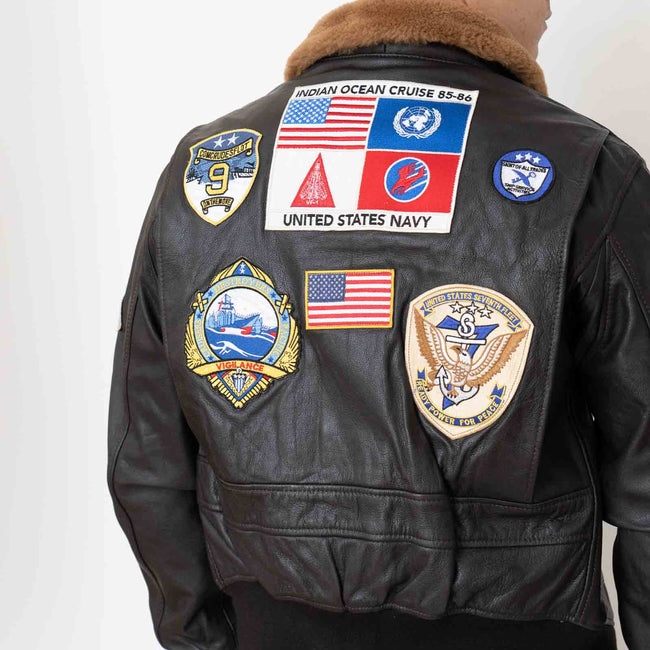 During WWII, naval personnel rarely adorned their leather jackets with more than a single patch on the left breast, depicting their name, qualification, and service. Sometimes, a single squadron patch was worn on the right breast. However, personalization with patches did not become widespread until after the war. As depicted by Maverick in Top Gun, G-1 jackets are often personalized with patches that mark deployments, aircraft flown, and significant milestones, such as carrier landings and flight hours.