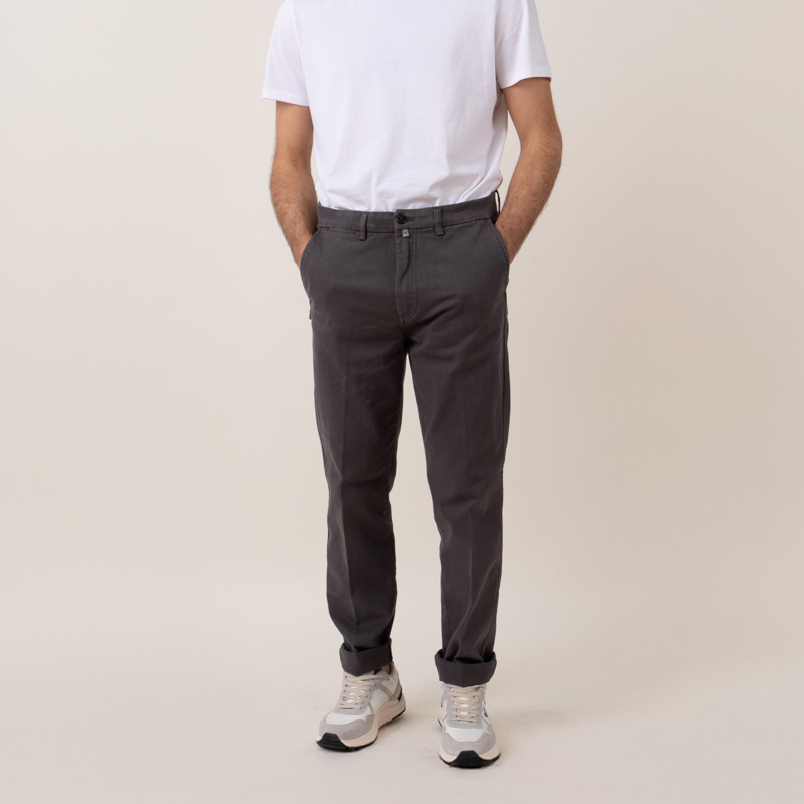 Regular straight-cut pants crafted from durable bull cotton fabric.