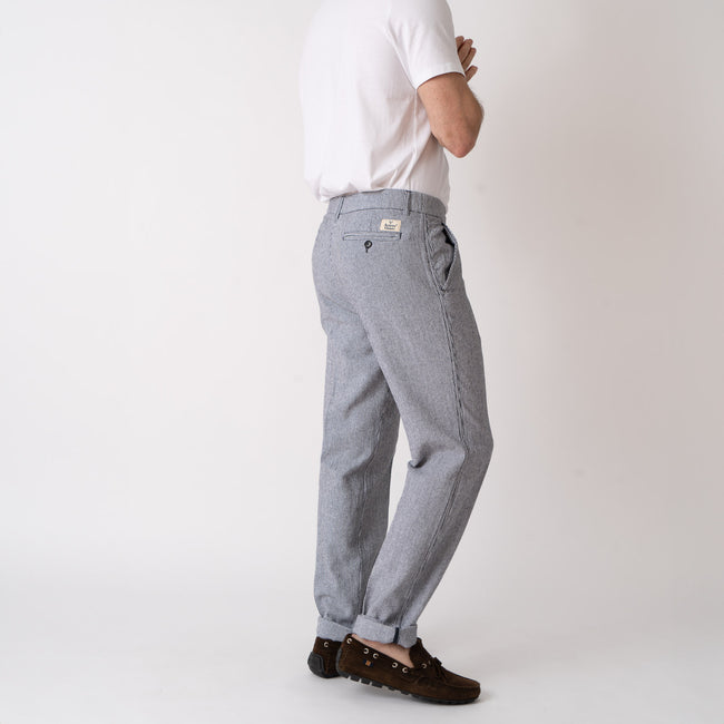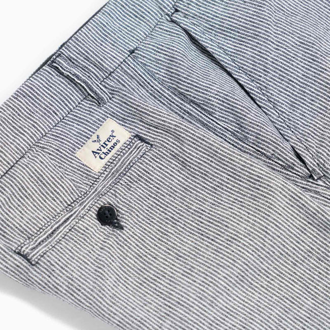 The Chinos pays homage to its military origins through meticulous design elements. The flat front, tailored waistband, and coin pocket on the right side reflect the commitment to classic tailoring and military tradition. These features not only add a touch of authenticity but also contribute to the trousers' functional and stylish characteristics.