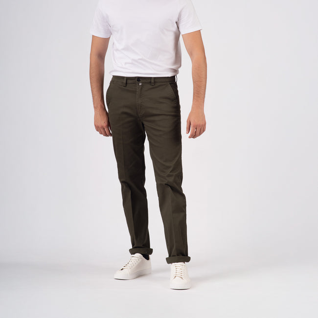 Realizzati in pregiato cotone triplo ritorto, i pantaloni chino offrono un'eccezionale resistenza e comfort. Il loro taglio regolare garantisce una vestibilità classica e versatile, ideale per ogni occasione.
