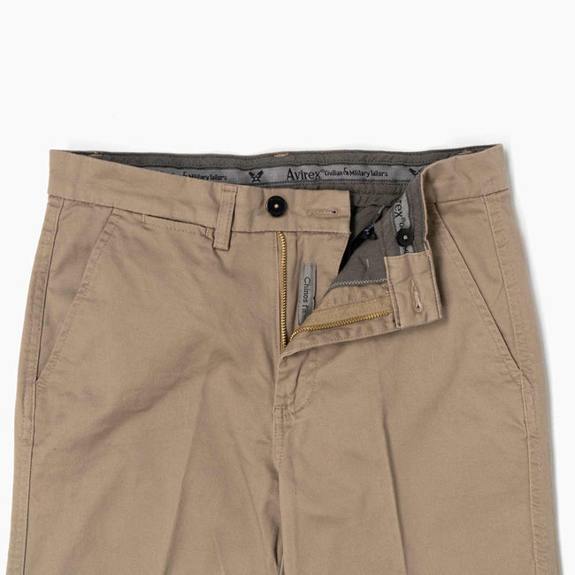 The Chinos pays homage to its military origins through meticulous design elements. The flat front, tailored waistband, and coin pocket on the right side reflect the commitment to classic tailoring and military tradition. These features not only add a touch of authenticity but also contribute to the trousers' functional and stylish characteristics.