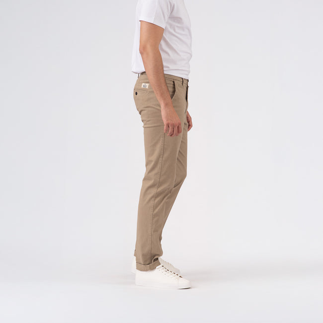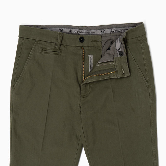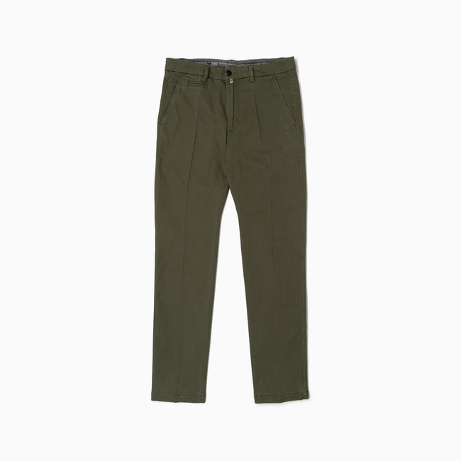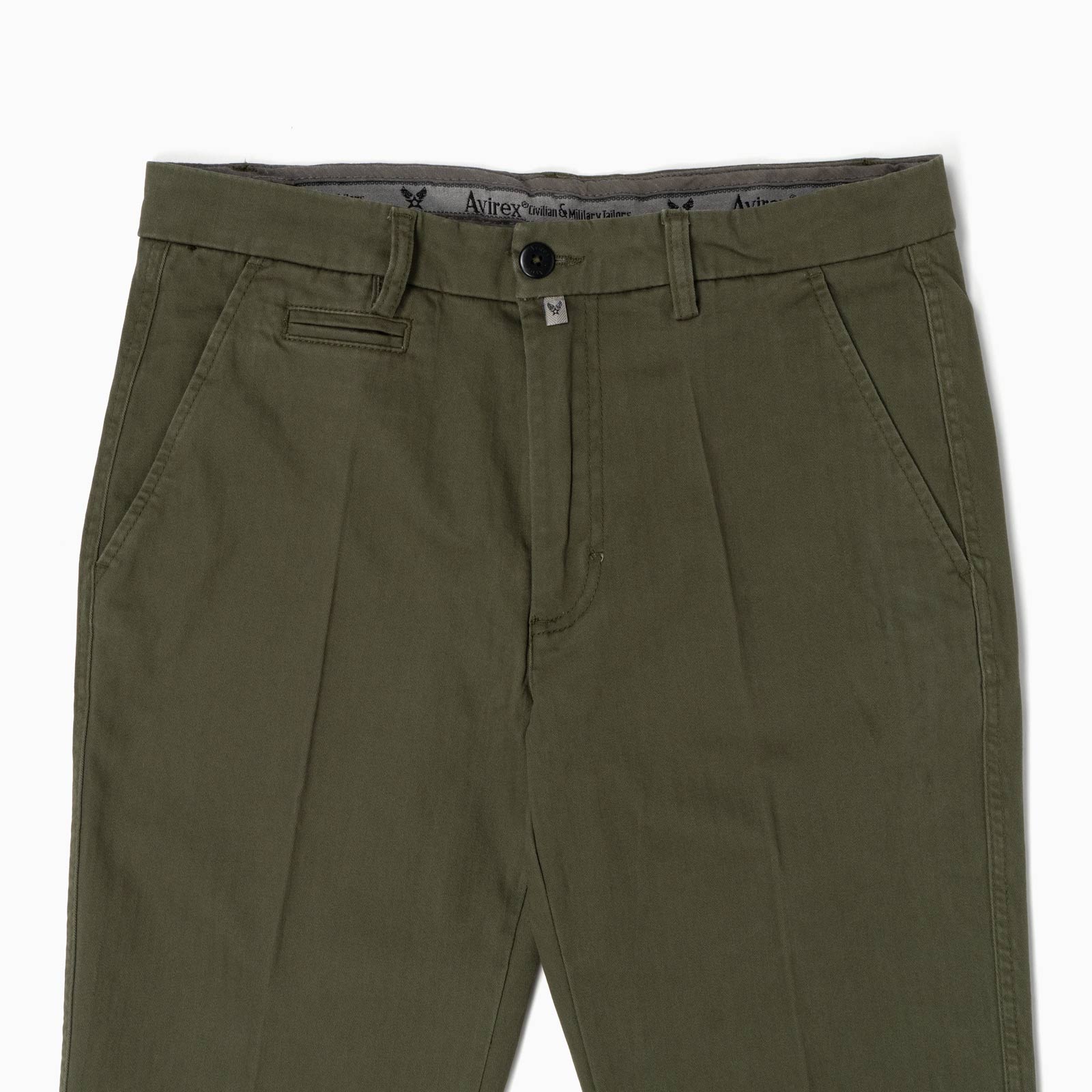 The Chinos pays homage to its military origins through meticulous design elements. The flat front, tailored waistband, and coin pocket on the right side reflect the commitment to classic tailoring and military tradition. These features not only add a touch of authenticity but also contribute to the trousers' functional and stylish characteristics.
