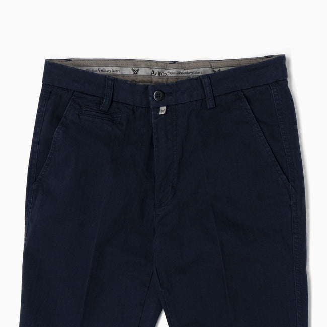 The Chinos pays homage to its military origins through meticulous design elements. The flat front, tailored waistband, and coin pocket on the right side reflect the commitment to classic tailoring and military tradition. These features not only add a touch of authenticity but also contribute to the trousers' functional and stylish characteristics.