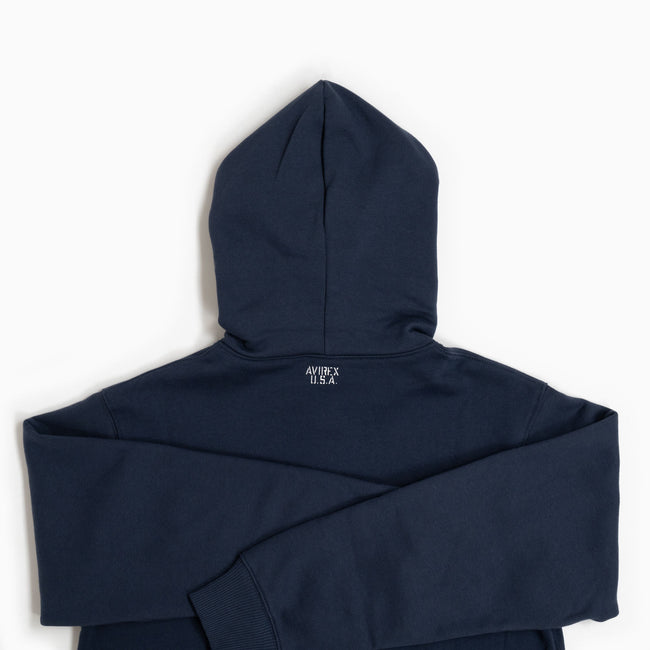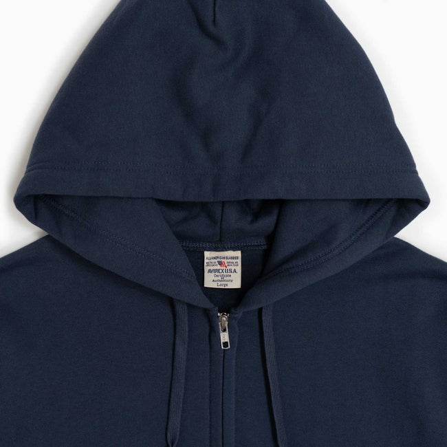 Hoodie with front zip Made of soft and durable fabric for long-lasting comfort Minimalist design with Avirex print detail on the back of the hood Ribbed cuffs and hem for a better fit and protection from the cold