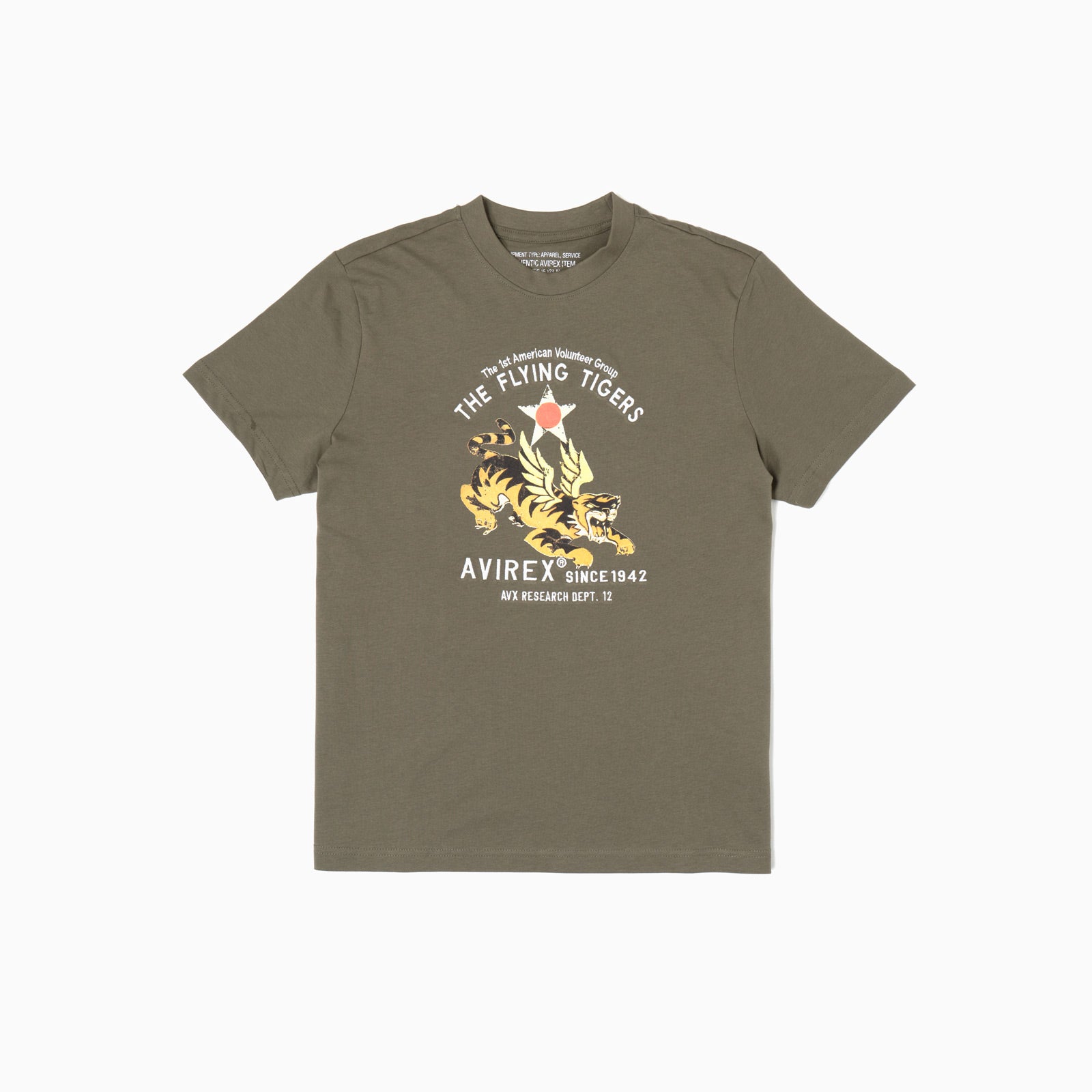 - Central print with winged tiger, inspired by the Flying Tigers, the 1st American Volunteer Group of World War II