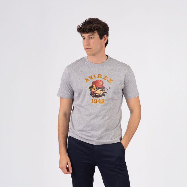 AVIREX T-shirt with vintage bulldog graphics and the inscription ‘1942’, inspired by the American military style.